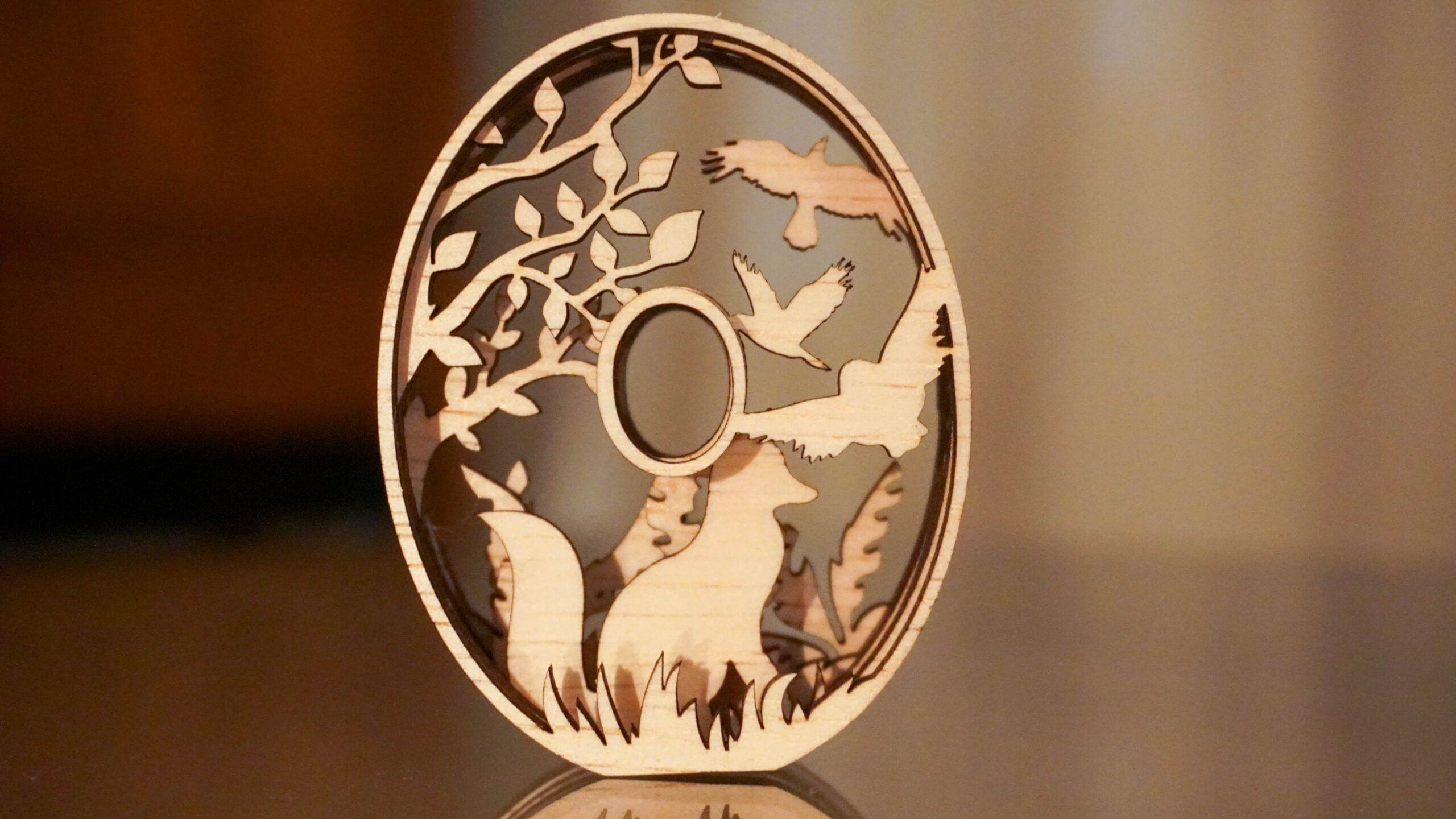 Botanische Houten Letter O – Met Vos, Vogels & Bosmotief