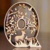 Meerlaagse houten letter P met reiger en botanische details. Elegant, handgemaakt en perfect als rustig natuuraccent.