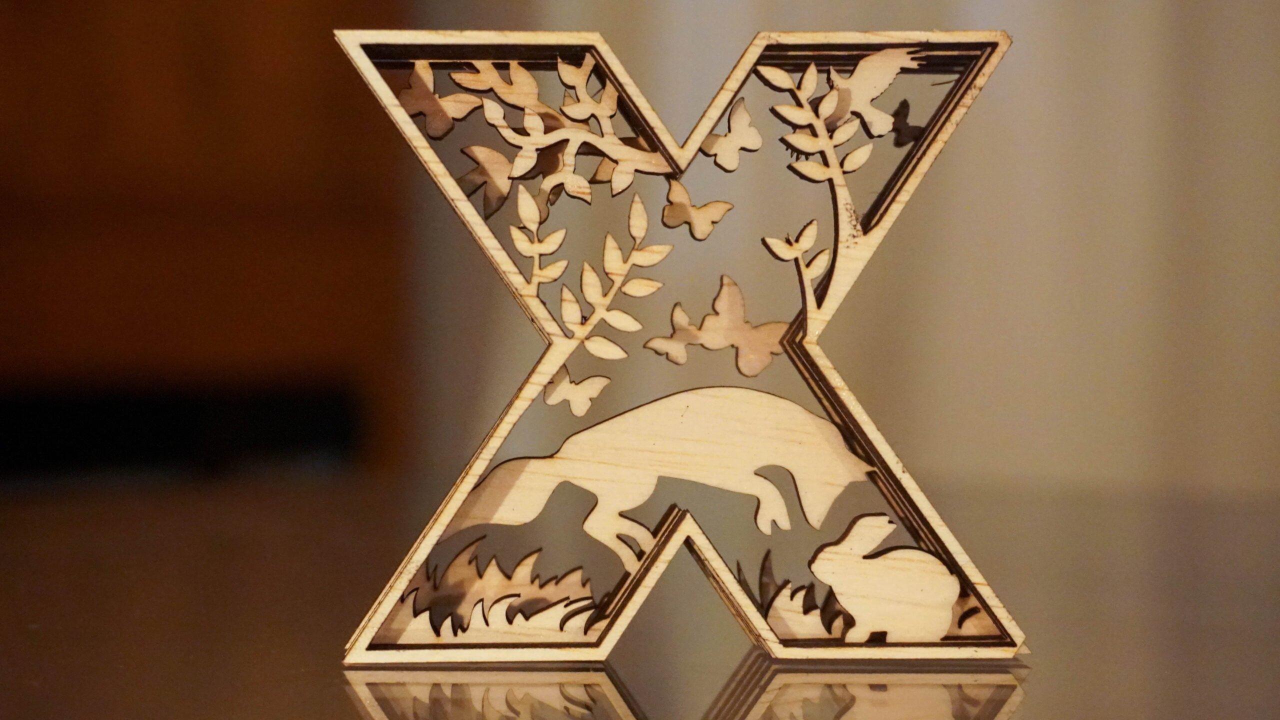 De botanische houten letter X is misschien niet de populairste letter van het alfabet, maar dat maakt ’m juist extra bijzonder. Deze handgemaakte versie, opgebouwd uit meerdere lagen hout en gegraveerd met sierlijke bladeren, verdient een plekje waar hij gezien wordt.