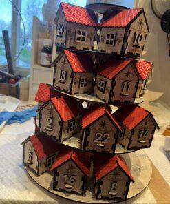 De kalender is volledig met de hand gemaakt uit FSC-hout en heeft daken die zijn afgewerkt met rood glitter-vinyl voor een feestelijke uitstraling. De verschillende lagen van het dorp zorgen voor een prachtige 3D-presentatie die een eyecatcher is in je interieur.
