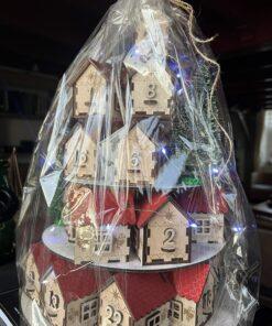 Breng de magie van kerst tot leven met deze unieke houten adventskalender. Dit kerstdorp bestaat uit 24 kleine huisjes, elk met een genummerd deurtje dat open kan. Achter elk deurtje is ruimte voor een verrassing, zodat je elke dag in december iets kunt ontdekken tot kerstavond.