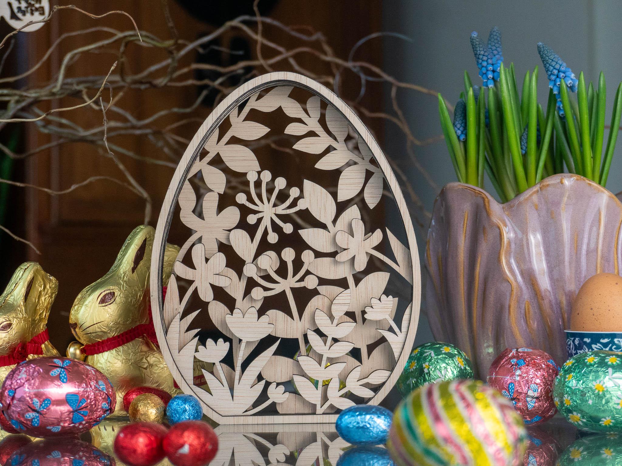 Houten Botanisch Paasei – Bloemendecoratie in Lagen