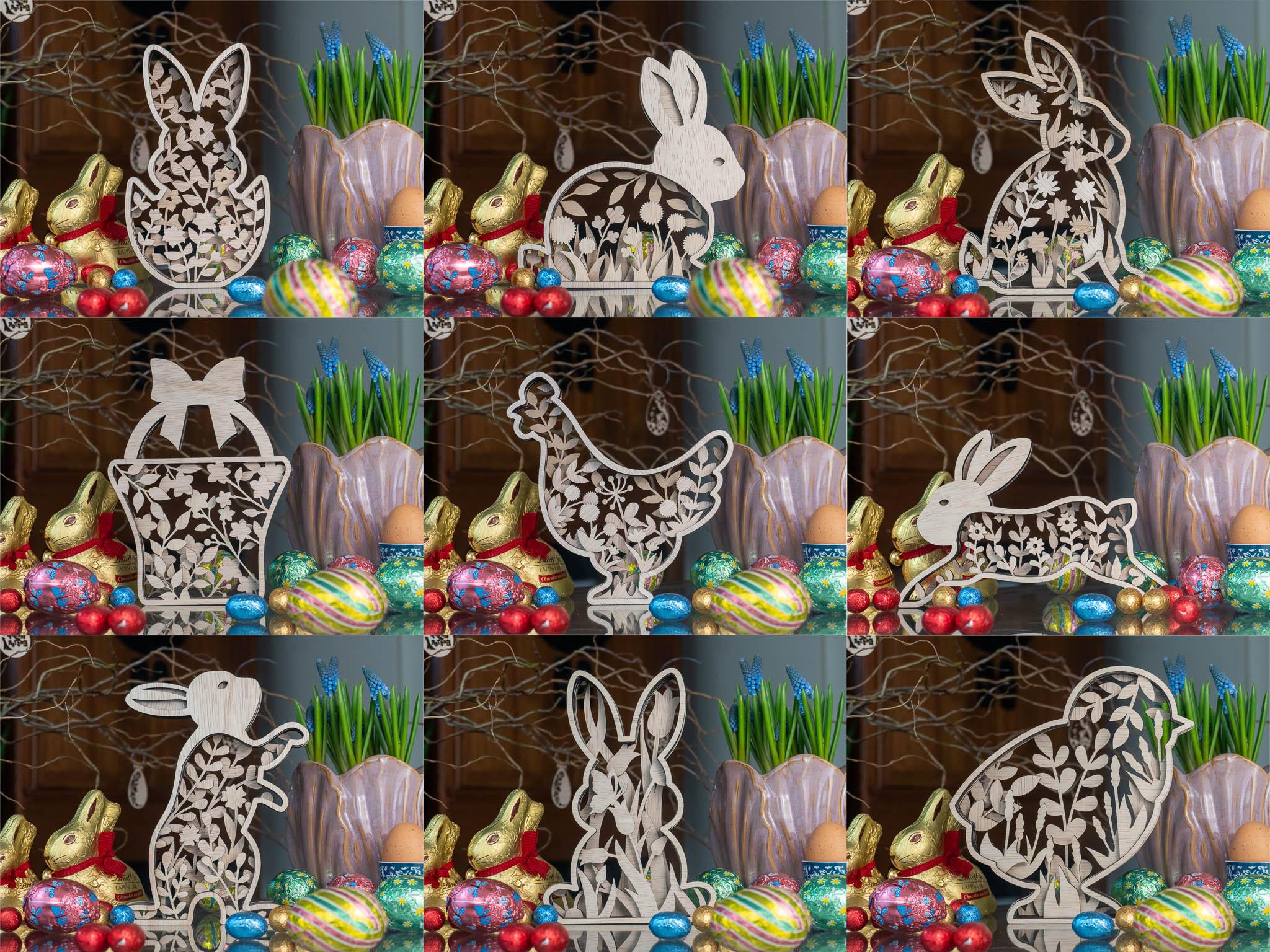 Dit houten paasei lijkt in eerste instantie misschien eenvoudig, maar als je goed kijkt, zie je een klein bloemenveld gevangen in hout. Tussen de takjes en bloemen ontstaat een rustig spel van lijnen, schaduw en licht – alsof de lente zelf even stil is blijven staan.